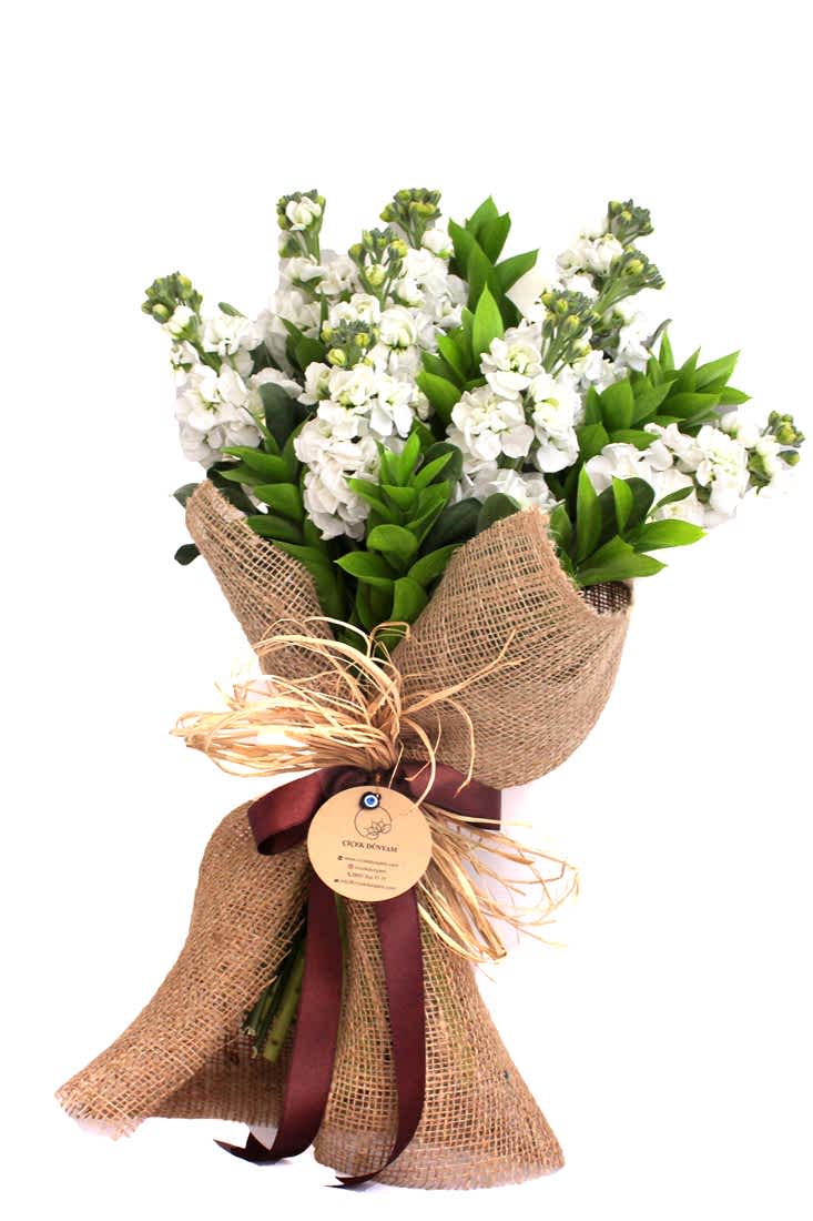 Çiçek Dünyam Dizayn Ekibi Tarafından Beyaz Şebboy Buketi Siz Derli Müşterilerimizin Beğenisine Sunulmaktadır.Tarzı İle İlgi Ve Dikkat Çekici Beyaz Şebboy Buket Tasarımı İle Ona Tarifsiz Bir Süpriz Yapmaya Ne Dersiniz?