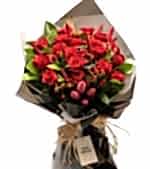 Kırmızı Gül Buketi (Kırmızı Hiperekum,Kırmızı Başak,Manolya)